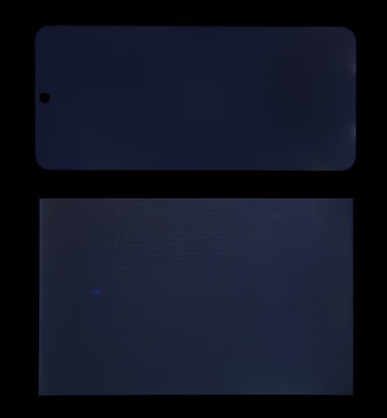 Экран смартфона имеет хорошие углы обзора без значительного сдвига цветов даже при больших отклонениях взгляда от перпендикуляра к экрану и без инвертирования оттенков. Однако черное поле при отклонении по диагонали сильно высветляется и приобретает фиолетовый оттенок.