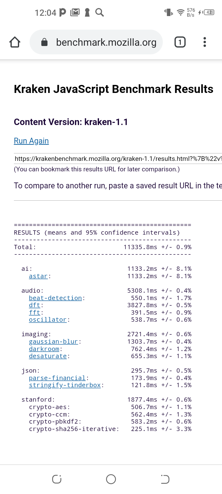 | Mozilla Kraken (мс, меньше — лучше) | 11336 | 4542 | 4507 | 11751 | 11708 |