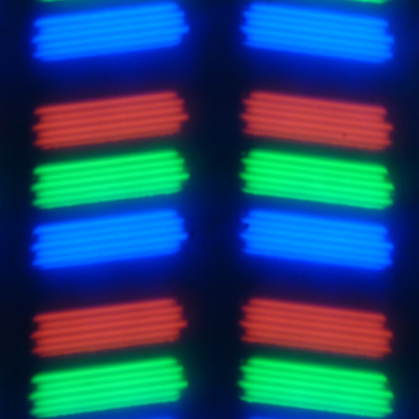 В данном смартфоне используется матрица типа IPS. Микрофотографии демонстрируют типичную для IPS структуру субпикселей: