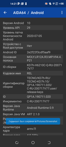- Операционная система Android 10, HIOS 6.1