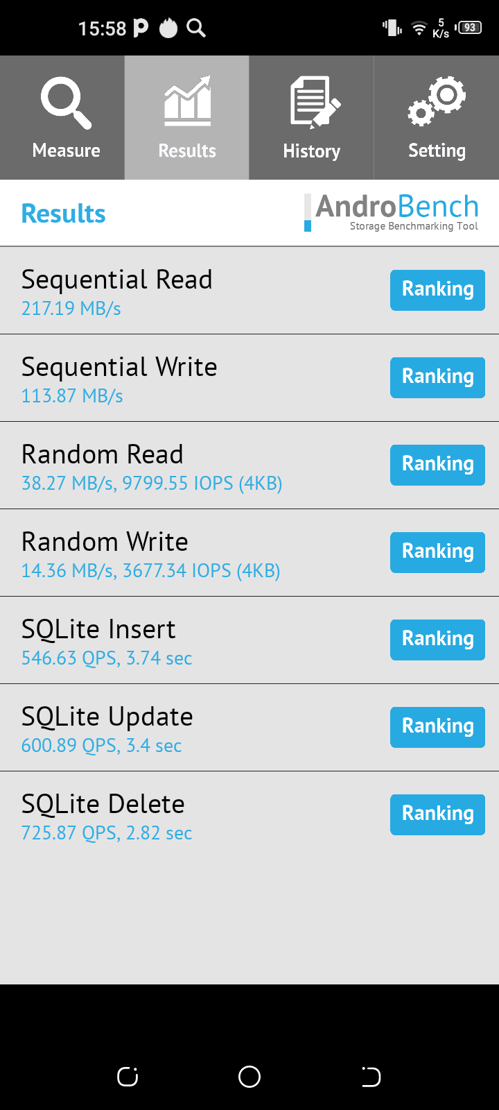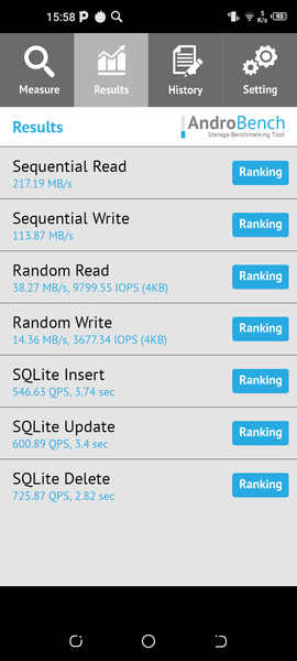 Результаты теста AndroBench на скорость работы с памятью: