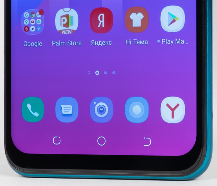 Для фронтальной камеры в матрице дисплея проделан круглый вырез. Пожалуй, он мог бы быть и поменьше: невооруженным глазом видно, насколько отверстие шире в диаметре, чем сам глазок камеры. Камера одна, собственной вспышки она не имеет. Зато не забыт столь полезный элемент, как светодиодный индикатор событий. Он довольно крупный, но светит мягким не раздражающим белым светом — только при выключенном экране.