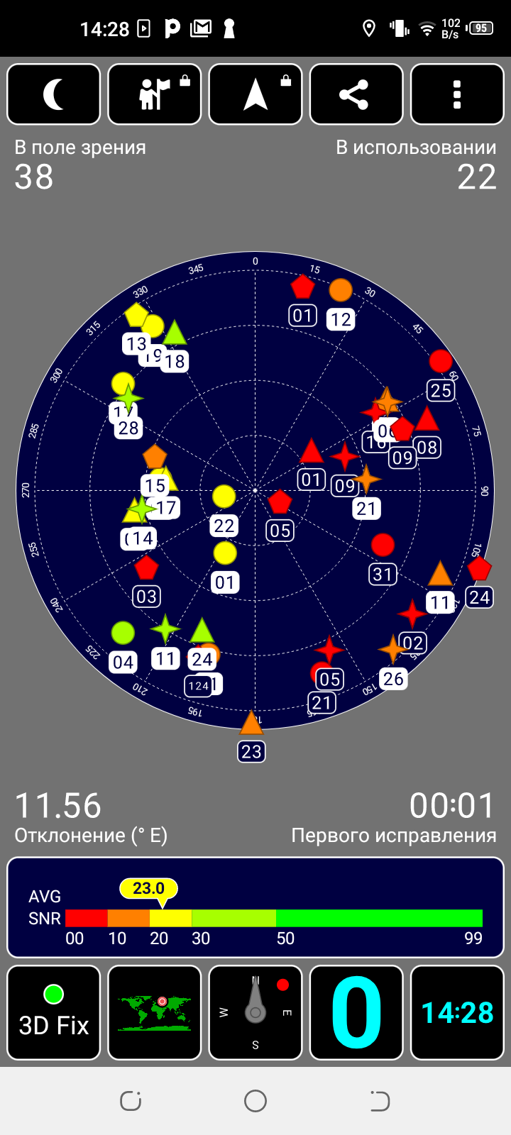 Навигационный модуль работает с GPS (с A-GPS), с отечественной Глонасс и с китайской Beidou, без европейской Galileo. Еще один негативный момент: отсутствие геомагнитного датчика (компаса) не позволяет ориентироваться с помощью мобильных карт на месте без движения.