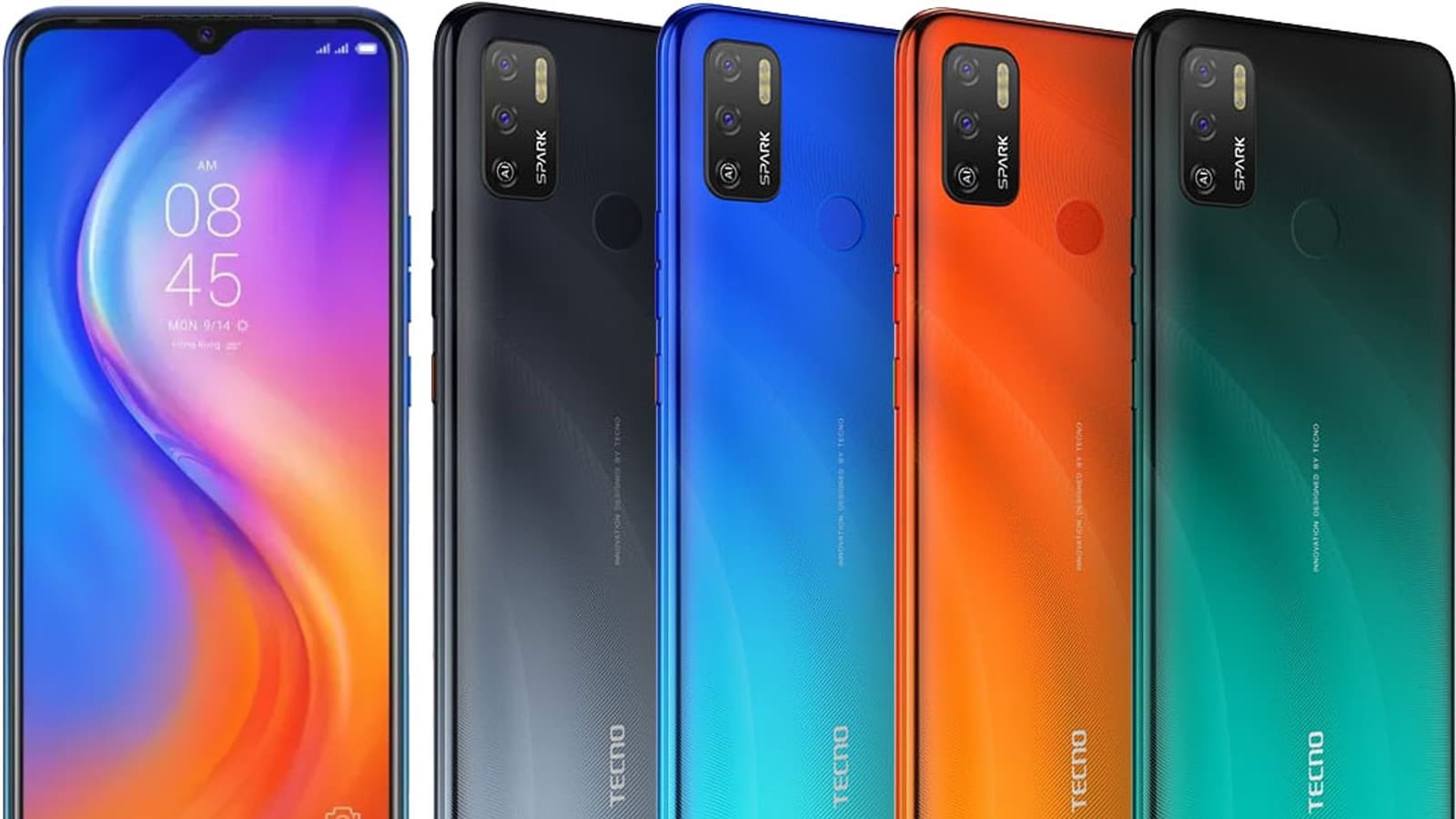 Смартфон Tecno Spark 5 выпускается в четырех цветах — зеленом, оранжевом, голубом и темно-сером (Ice Jadeite, Spark Orange, Vacation Blue, Misty Grey). Все варианты имеют градиент цвета и лакированное покрытие. Полноценной защиты от пыли и влаги корпус смартфона не получил.