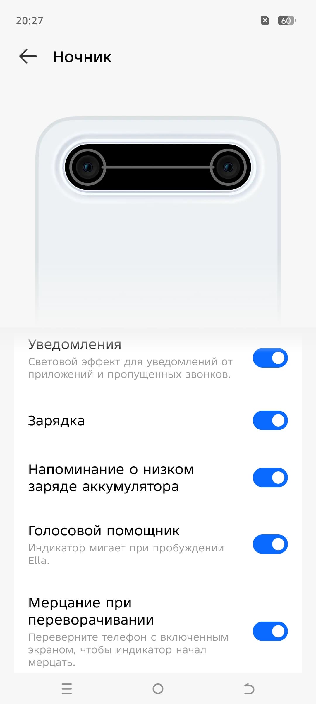 Разработчики не удержались, и добавили «блестяшек». Нарисовали на блоке вокруг двух глазков светящиеся светодиодные кружки, которые будут мерцать в лицо собеседнику при различных входящих событиях, сопровождать работу голосового помощника, отображать процесс зарядки, визуализировать музыку и т. д. Хорошо, что всё это можно повыключать в соответствующем меню настроек.