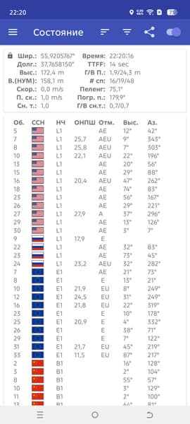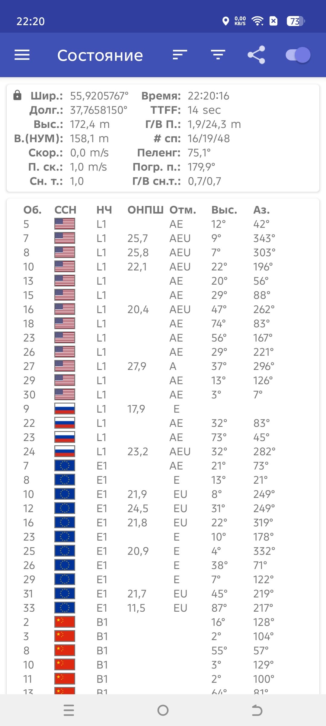 Одноканальный модуль спутниковой навигации работает с GPS, а также с Глонасс, BDS и Galileo. Первые спутники при холодном старте обнаруживаются быстро, точность позиционирования нормальная.