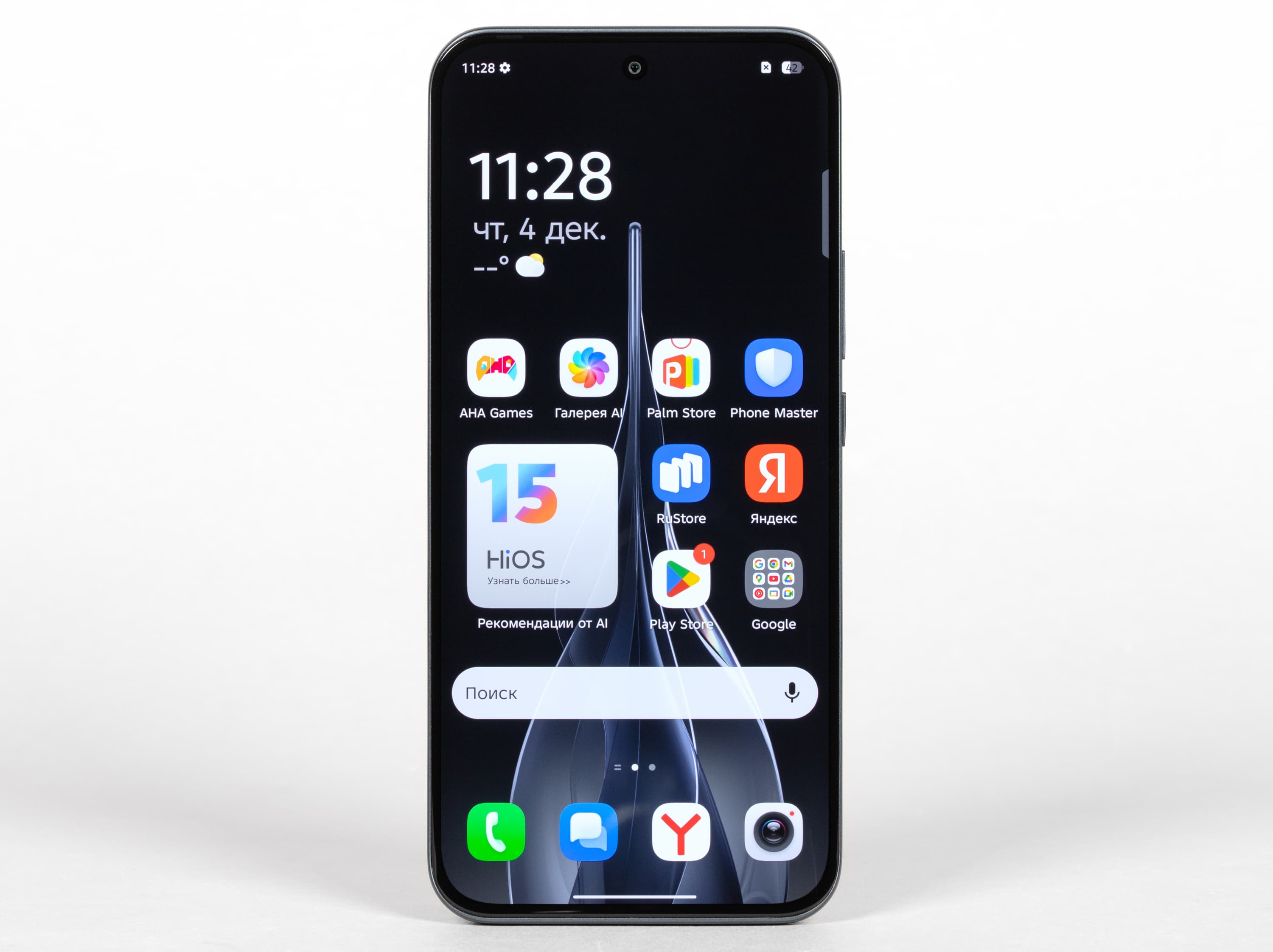 Переднее стекло — Corning Gorilla Glass 7i, это бюджетное стекло для смартфонов среднего уровня. Как уже было сказано выше, оно не плоское, а следовательно, может давать блики и приводить к непреднамеренным касаниям по бокам. В целом, совершенно бесполезная выдумка. Сам экран далеко не маленький (почти 6,8 дюйма), а за счет очень тонкой рамки вокруг и минимального «подбородка» смотрится еще больше. Но аппарат нельзя назвать миниатюрным: он довольно широкий, поэтому одной рукой с таким экраном управляться всё равно не получится, даже несмотря на всю «сверхтонкость».