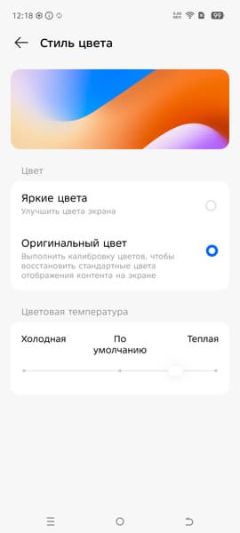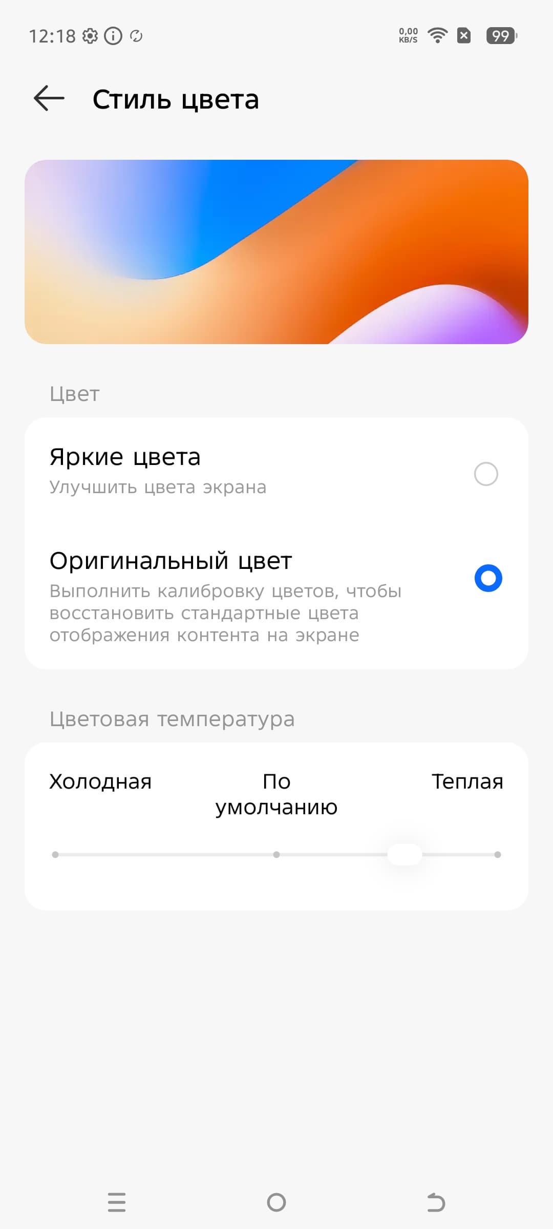 Отметим, что на экранах с уширенным цветовым охватом (без соответствующей коррекции) цвета́ обычных изображений, оптимизированных для устройств sRGB, выглядят неестественно насыщенными. Отсюда и рекомендация: в большинстве случаев смотреть кино, фотографии и все естественное лучше при выборе профиля Оригинальный цвет с использованием штатной программы Галерея AI. Но не исключено, что есть и другие программы, которые могут корректировать цветовой охват в соответствии с возможностями экрана.
