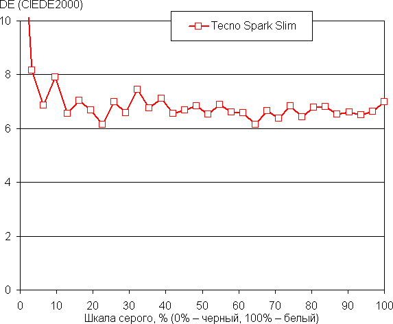 (Самые темные области шкалы серого в большинстве случаев можно не учитывать, так как там баланс цветов не имеет большого значения, да и погрешность измерений цветовых характеристик на низкой яркости большая.)