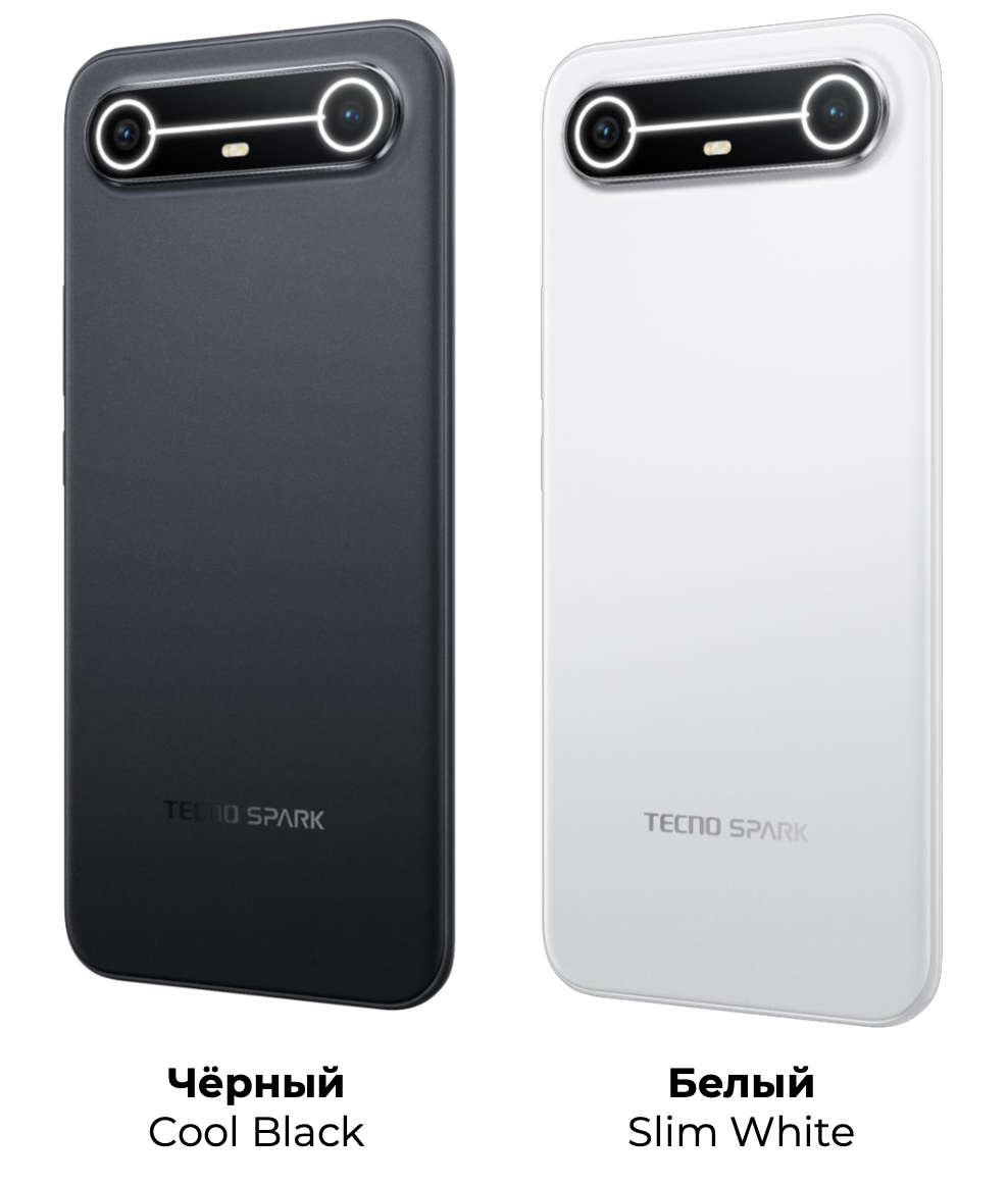 Смартфон Tecno Spark Slim представлен в двух цветовых решениях (черном и белом), а его корпус получил лишь легкую защиту от водяных брызг и пыли по стандарту IP64.
