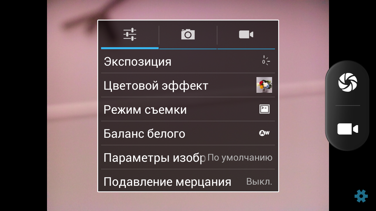 Отдельной клавиши для управления съемкой нет, проще всего запустить программу управления камерой с экрана блокировки. Это стандартное приложение, входящее в состав системы Android 4.1. Основные элементы управления логично разнесены по экрану, дополнительные настройки скрыты в меню. Среди них есть все, что нужно для цифровой жизни: от выбора разрешения съемки до настройки баланса белого. Доступны следующие режимы работы камеры: обычная фотография, HDR, ночная съемка, панорамная съемка.
