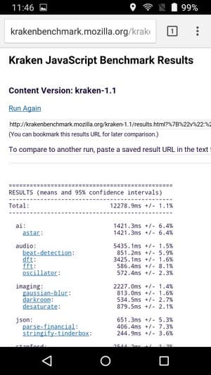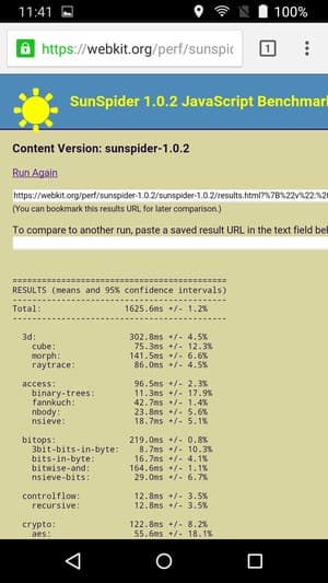 Что касается бенчмарков для оценки скорости движка javascript, то стоит всегда делать скидку на то, что в них результаты существенно зависят от браузера, в котором запускаются, так что сравнение может быть истинно корректным только на одинаковых ОС и браузерах, а такая возможность имеется при тестировании не всегда. В случае с ОС Android мы всегда стараемся использовать Google Chrome.