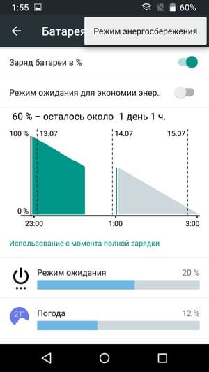 Тестирование традиционно проводилось на обычном уровне энергопотребления, но в смартфоне имеется и штатный режим энергосбережения.