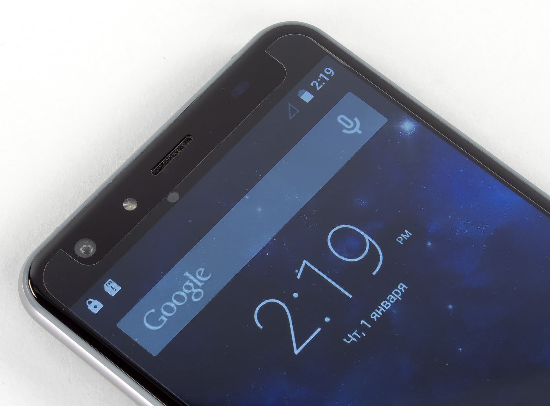 Передняя панель полностью прикрыта защитным стеклом Gorilla Glass 3. Согласно официальному описанию, здесь применено покатое 2,5D-стекло производства Corning, а экран выполнен с применением технологии OGS (без воздушной прослойки).