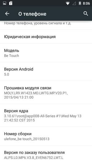 Аппаратная платформа Ulefone Be Touch строится на базе свежей восьмиядерной однокристальной системы (SoC) MediaTek MT6752. В конфигурацию новой SoC входит восемь полноценных процессорных ядер, только здесь используются более производительные ядра Cortex-A53, в отличие от применявшихся в прошлом поколении платформ MediaTek ARM Cortex-A7. Эта 64-битная платформа выполнена по техпроцессу 28 нм, максимальная частота ядер достигает 1,7 ГГц. За обработку графики здесь отвечает мощный и современный видеоускоритель Mali-T760. Объем ОЗУ составляет целых 3 ГБ, а собственной памяти для нужд пользователя в устройстве доступно около 11,5 ГБ из номинально обозначенных 16 ГБ.