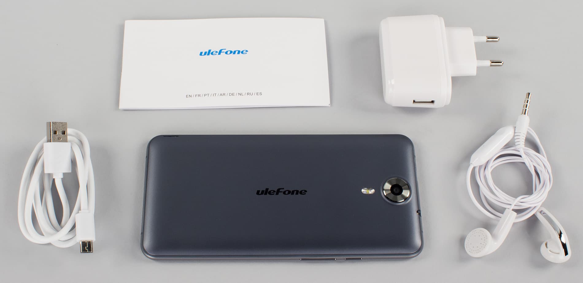 Ulefone Be Touch поставляется в продажу в небольшой прямоугольной коробке, выполненной из твердого картона. Упаковка выполнена аккуратно, оформлена достаточно стильно, внешне сильно напоминает таковую у iPhone 6 Plus, с которой, собственно, и копировалась.