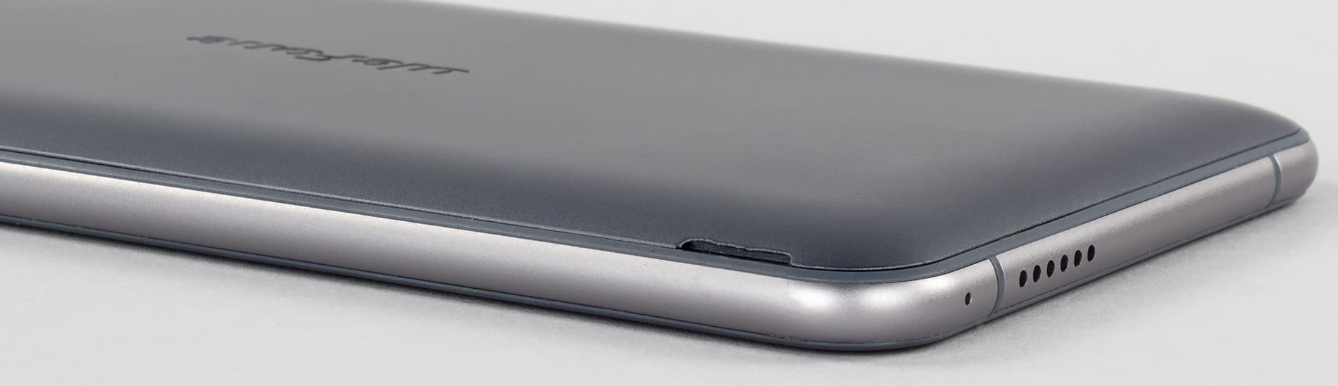 Отличия составляют лишь некоторые детали в задней части устройства: сама задняя поверхность не совсем плоская, а немного сужающаяся к краям, да к тому же некрасивый крупный модуль камеры заметно портит весь вид. Некрасивый он потому, что малюсенькое окошко с оптикой зачем-то оказалось обрамлено широченным грубым металлическим ободом с кольцевыми насечками по всей поверхности. Этот элемент выглядит словно какая-то незаконченная металлическая болванка с завода, случайно врезанная в пластик корпуса. К тому же она еще и заметно выпирает за пределы поверхности, даже несмотря на то, что сам корпус имеет бо́льшую толщину, чем тот же iPhone 6 Plus. Кольцевые канавки мгновенно забиваются жиром и грязью, этот элемент постоянно выглядит неопрятно.