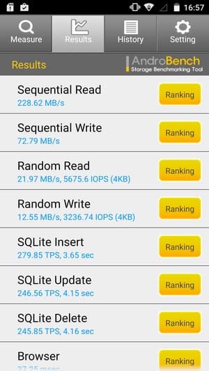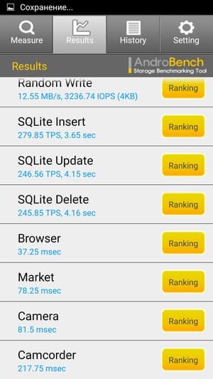 Результаты теста AndroBench на скорость работы с памятью: