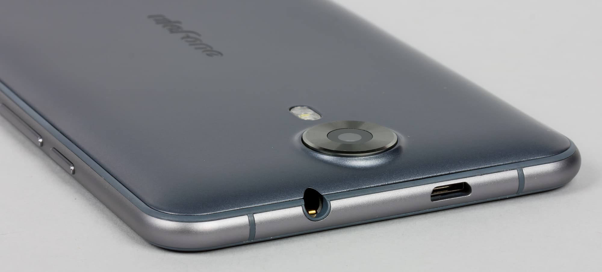 На левой боковой грани здесь расположены обе клавиши (блокировки и громкости), а на верхнем торце — оба интерфейсных разъема (выход на наушники и Micro-USB). Порт USB поддерживает подключение внешних устройств в режиме OTG.