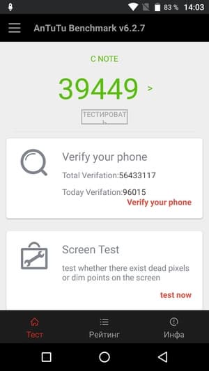 Тестирование в комплексных тестах AnTuTu и GeekBench: