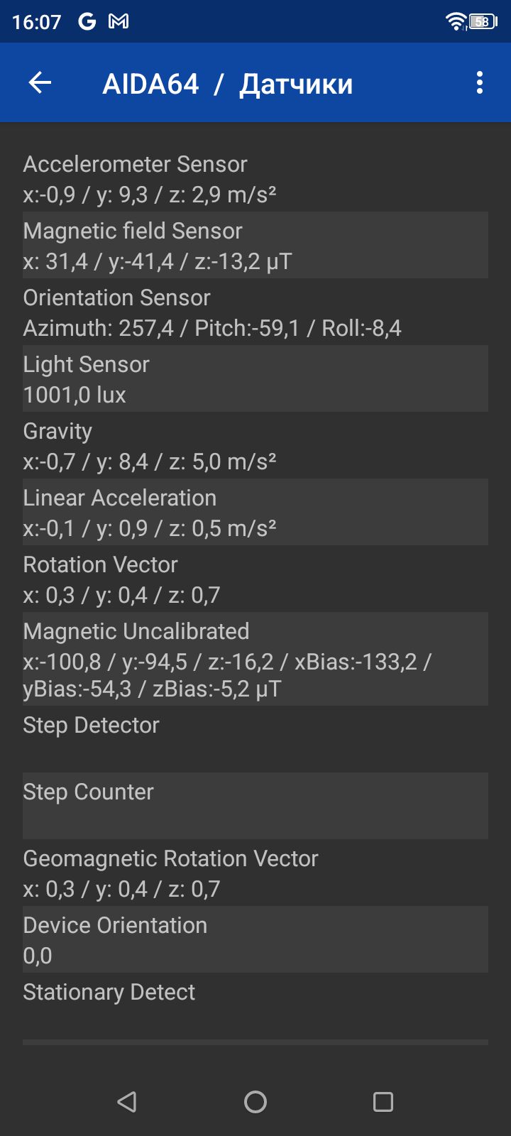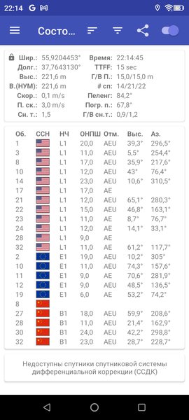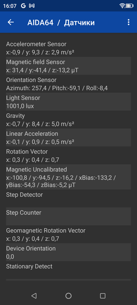 Навигационный модуль работает с GPS (A-GPS), Глонасс, BeiDou и Galileo. Первые спутники при холодном старте обнаруживаются быстро, точность позиционирования не вызывает претензий. А вот то, что среди установленных датчиков не обнаружилось гироскопа, это минус. Магнитометр присутствует.