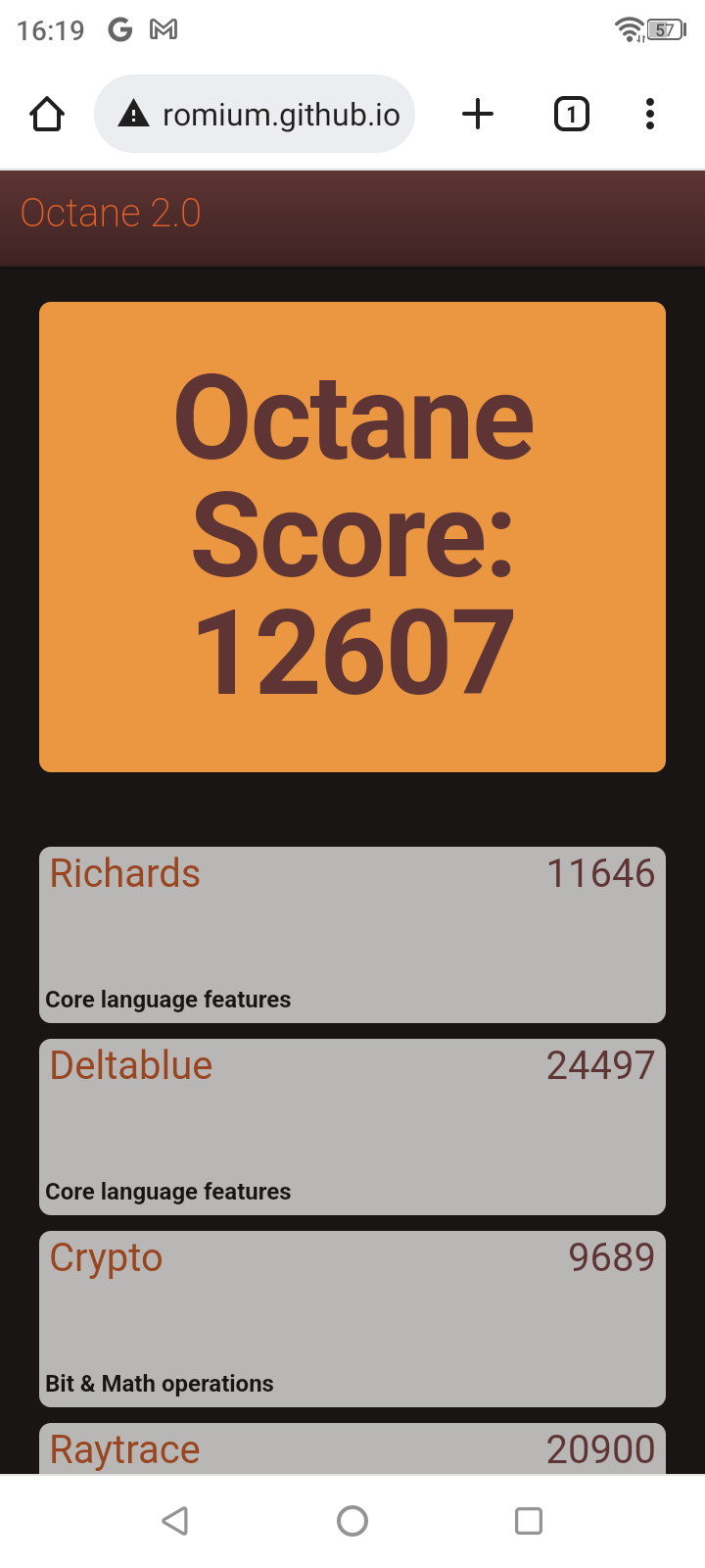| Google Octane 2 (больше — лучше) | 12607 | 14263 | 12457 | 19887 | 16670 |
