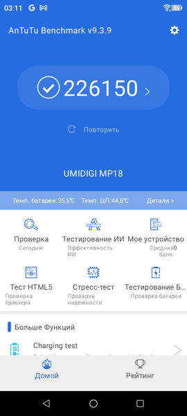 Для тех, кто переживает за наличие официального доступа к сервисам Google, здесь нет поводов для беспокойства: и магазин Google Play, и сервисы Google на месте. Похвально, что, в отличие от распространившихся на нашем рынке смартфонов Tecno и Infinix, Umidigi не позволяет себе утомлять владельца смартфона всплывающей рекламой. Это вызывает уважение.