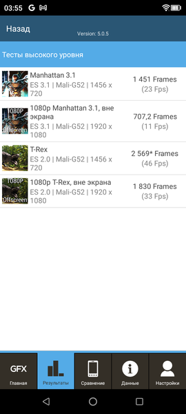 Все результаты, полученные нами при тестировании смартфона в самых свежих версиях популярных бенчмарков, мы для удобства свели в таблицы. В таблицу обычно добавляется несколько других аппаратов из различных сегментов, также протестированных на аналогичных последних версиях бенчмарков (это делается лишь для наглядной оценки полученных сухих цифр). К сожалению, в рамках одного сравнения нельзя представить результаты из разных версий бенчмарков, поэтому «за кадром» остаются многие достойные и актуальные модели — по причине того, что они в свое время проходили «полосу препятствий» на предыдущих версиях тестовых программ.