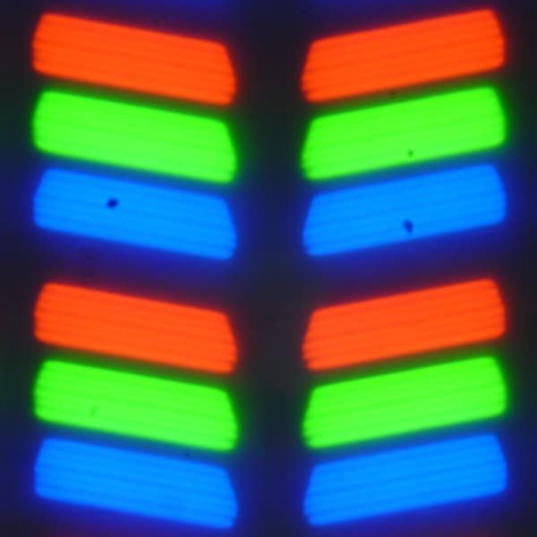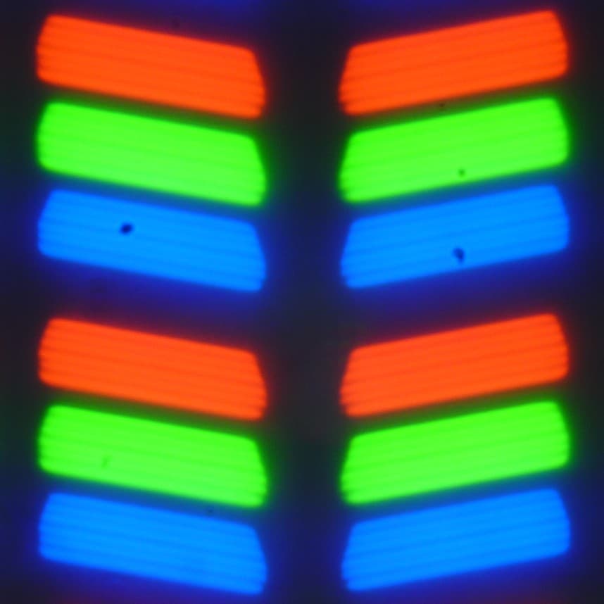 В данном смартфоне используется матрица типа IPS. Микрофотографии демонстрируют типичную для IPS структуру субпикселей: