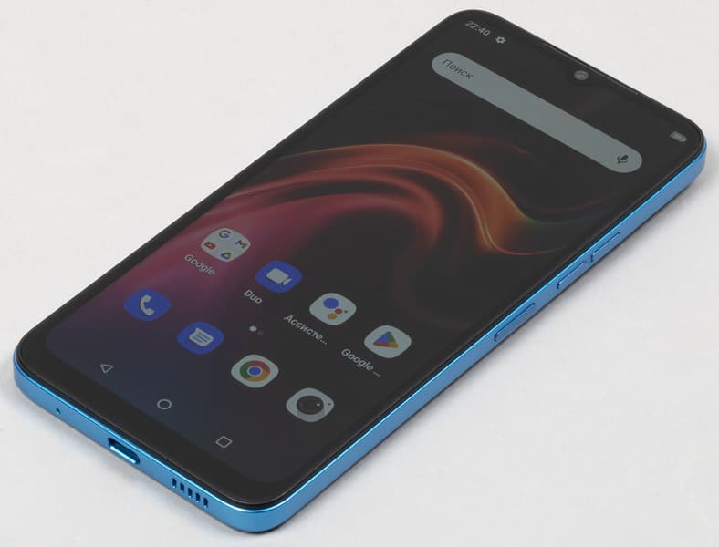 Корпус лишен скользких обводов и зауженных граней, потому максимально надежно удерживается в ладони, не прокручивается и не проскальзывает. Острых ребер, которые впивались бы в кожу ладони, здесь нет. Все поверхности выполнены из пластика, текстура твердая, но матовая. На боках и спинке практически не остается отпечатков пальцев, так что корпус этого симпатичного смартфона всегда выглядит опрятно.
