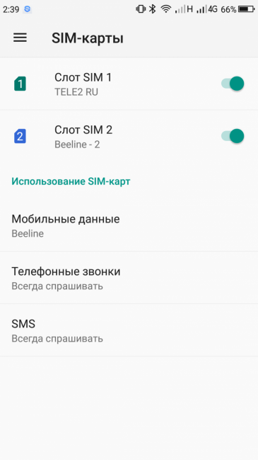 Аппарат умеет поддерживать в режиме активного ожидания обе SIM-карты в 3G/4G одновременно. То есть, например, SIM-карта будет работать в ожидании в 3G для голосовой связи, даже если для передачи данных в 4G назначена другая карта. Интерфейс позволяет выбрать для голосовых звонков и SMS определенную SIM-карту заранее. Работают карты в режиме Dual SIM Dual Standby, радиомодем здесь один.