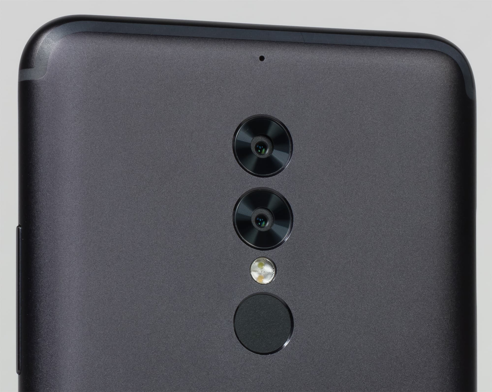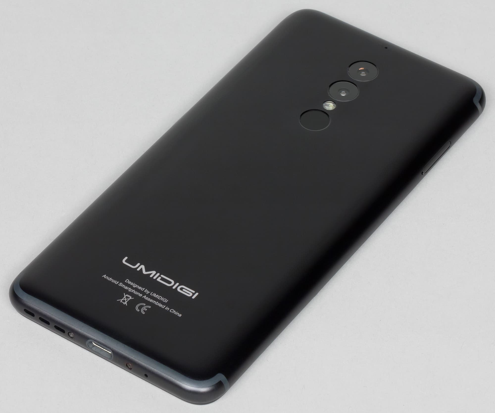 Если сравнивать с моделью Umidigi S, то у S2 более привлекательная задняя сторона: здесь тоже два отдельных модуля камер, но ни один из них не выпирает и оба окошка имеют одинаковый размер. Результат смотрится симпатично, а точно такая же по диаметру круглая площадка сканера отпечатков пальцев удачно вписывается в общую картину.