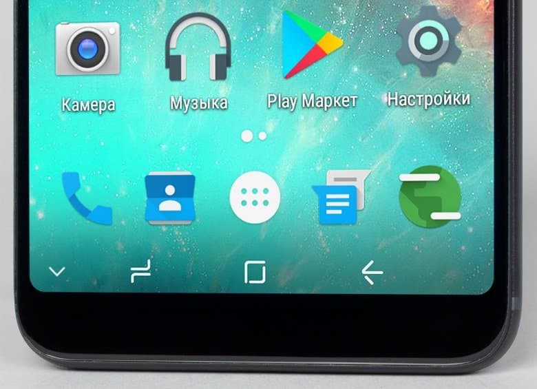 В нижней части под экраном нет аппаратных кнопок. Панель навигационных кнопок на экране можно скрывать и вызывать обратно.