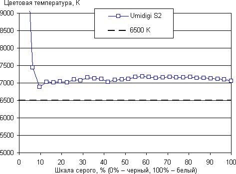 Цвета на экране Umidigi S2, видимо, из-за завышения цветового контраста слегка перенасыщены, цветовой баланс у Nexus 7 и тестируемого экрана немного различается.