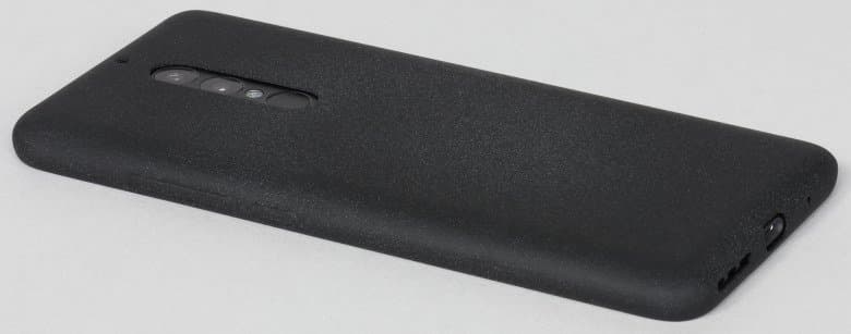 Также в комплект вложили пластмассовый непрозрачный защитный чехол с шероховатой поверхностью, ее текстура напоминает крупную наждачную бумагу. С таким чехлом аппарат, естественно, удерживается в руках гораздо надежнее.