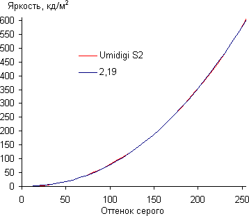 Контрастность (примерно в центре экрана) высокая — порядка 1300:1. Время отклика при переходе черный-белый-черный равно 24 мс (14 мс вкл. + 10 мс выкл.). Переход между полутонами серого 25% и 75% (по численному значению цвета) и обратно в сумме занимает 37 мс. Построенная по 32 точкам с равным интервалом по численному значению оттенка серого гамма-кривая не выявила завала ни в светах, ни в тенях. Показатель аппроксимирующей степенной функции равен 2,19, что очень близко к стандартному значению 2,2. При этом реальная гамма-кривая мало отклоняется от степенной зависимости:
