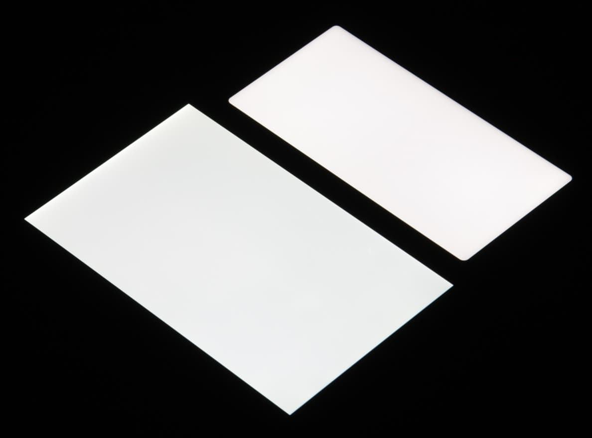 Яркость под углом у экранов уменьшилась (как минимум в 5 раз, исходя из разницы в выдержке), но у Umidigi S2 экран все же немного светлее. Черное поле при отклонении по диагонали высветляется сильно и приобретает красноватый оттенок. Фотографии ниже это демонстрируют (яркость белых участков в перпендикулярном плоскости экранов направлении одинаковая!):