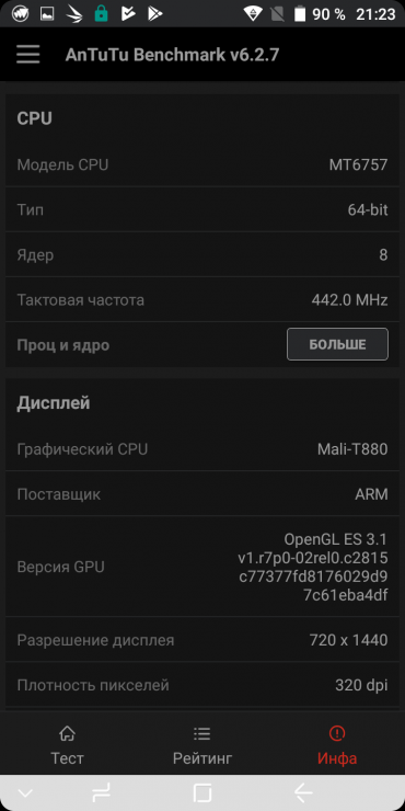 MediaTek MT6757 — свежая и хорошо знакомая нам по многим современным моделям китайских середнячков платформа для моделей среднего уровня. Ведет она себя здесь совершенно стандартно: выдает в AnTuTu около 60К очков, немного обгоняет более старые Helio P10 и Kirin 655, сравнима по производительности с Qualcomm Snapdragon 625 и HiSilicon Kirin 659, неплохо показывает себя в большинстве игр. Особых претензий к быстродействию платформы нет.