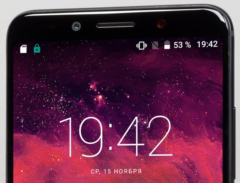 Umidigi S2 оснащен дисплеем IPS (TDDI) производства Sharp, прикрытым 2.5D-стеклом Corning Gorilla Glass 4. Физические размеры экрана составляют 68×136 мм при диагонали 6 дюймов. Разрешение этого огромного по площади дисплея — всего лишь 1440×720, то есть с плотностью точек тут негусто, всего около 268 ppi. Рамка вокруг экрана имеет толщину по бокам 3 мм, сверху и снизу — примерно по 1 см.