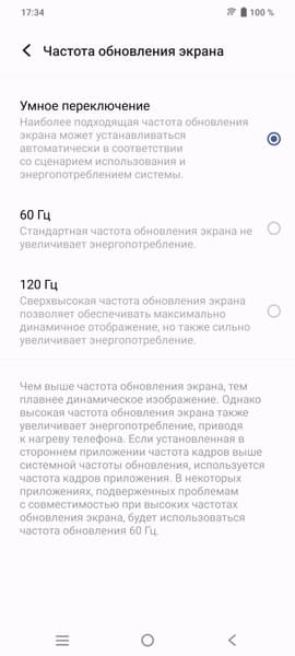 В настройках экрана можно включить режим с повышенной до 120 Гц частотой обновления: