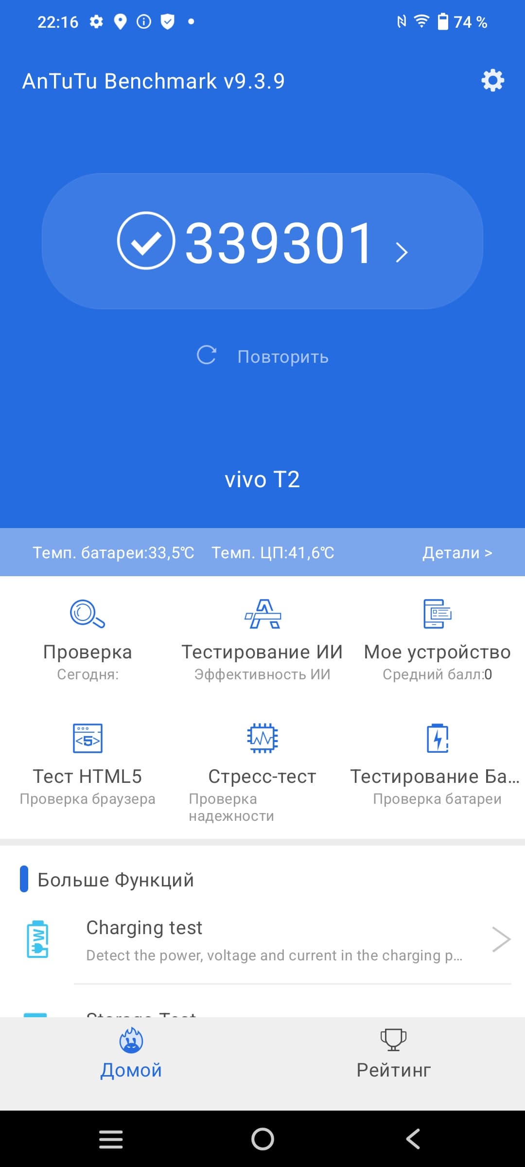 Тестирование в комплексных тестах AnTuTu и GeekBench:
