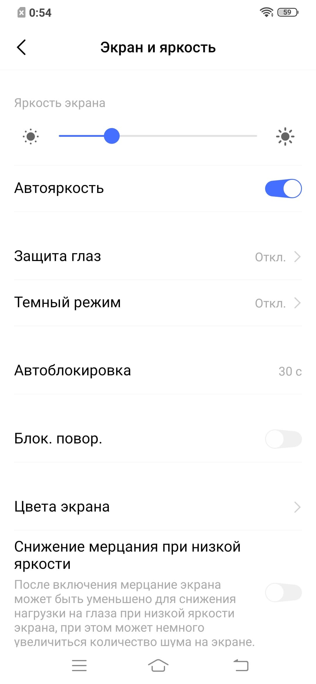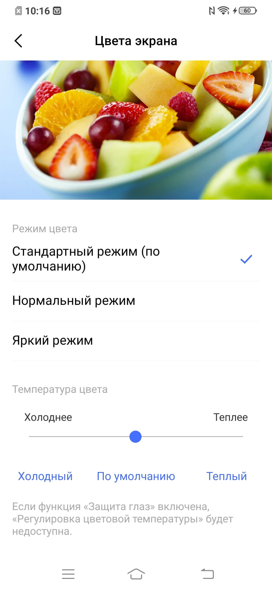 Разумеется, присутствует модная настройка (Защита глаз), позволяющая снизить интенсивность синей компоненты: