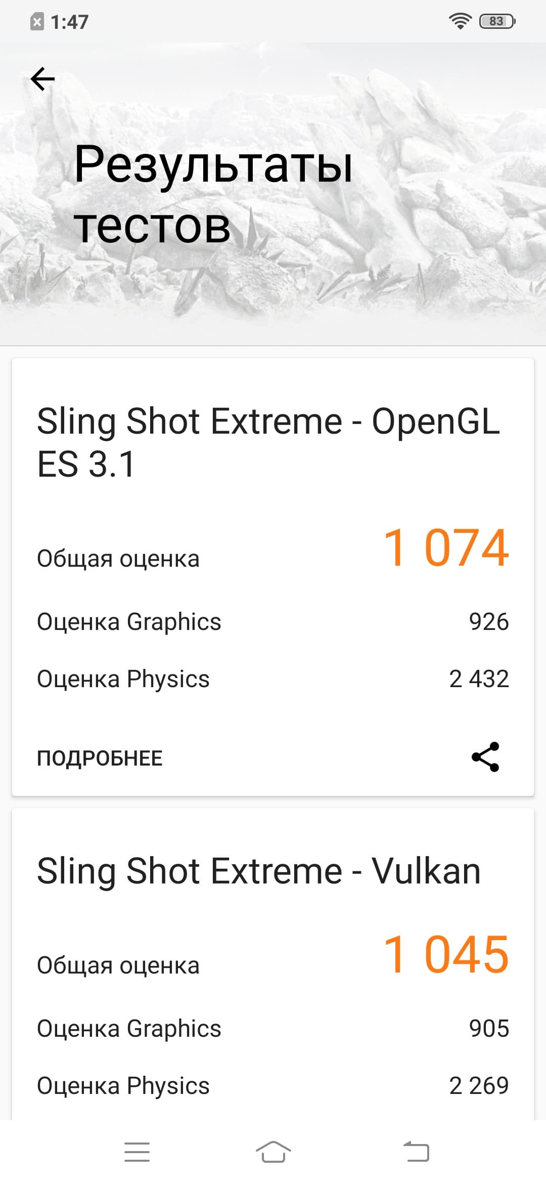| 3DMark Sling Shot Ex Vulkan (больше — лучше) | 1045 | 936 | 1075 | 2007 | 1069 |