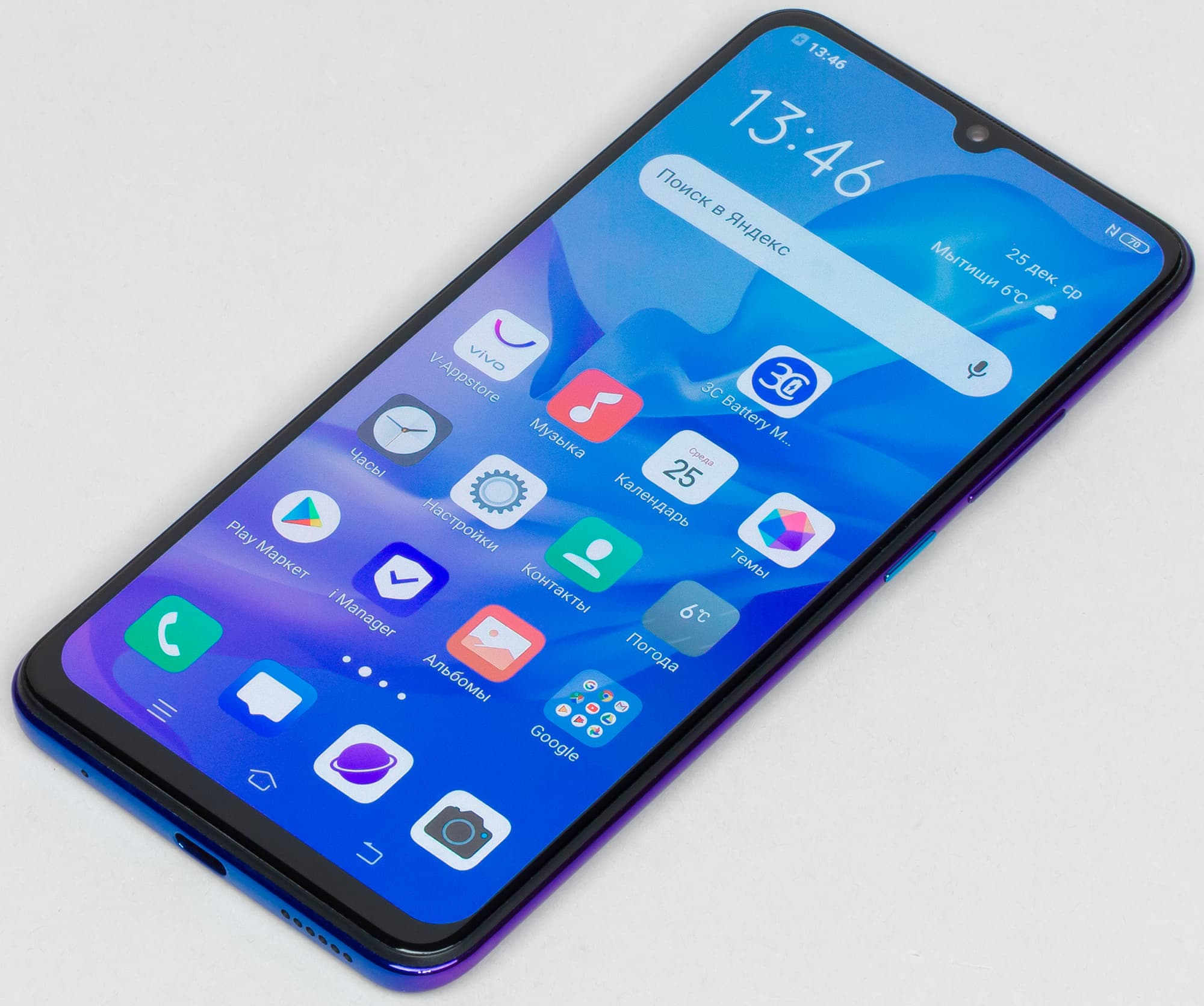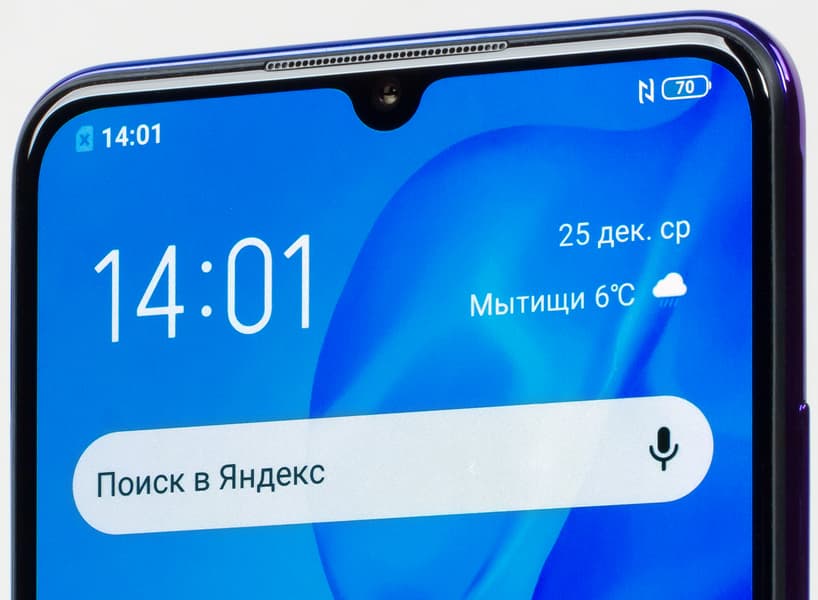 Фронтальный модуль камеры установлен в ставшем уже привычным каплевидном вырезе в экране. Камера здесь одна, без дополнительных модулей, так что она не может обеспечить стопроцентную надежность при авторизации по лицу.