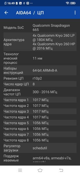 - SoC Qualcomm Snapdragon 665, 8 ядер (4×Kryo 260 Gold @2,0 ГГц + 4×Kryo 260 Silver @1,8 ГГц)