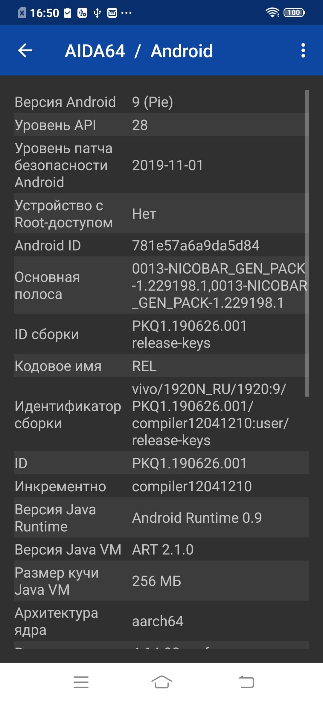 - Операционная система Android 9.0 (Pie); Funtouch 9.2