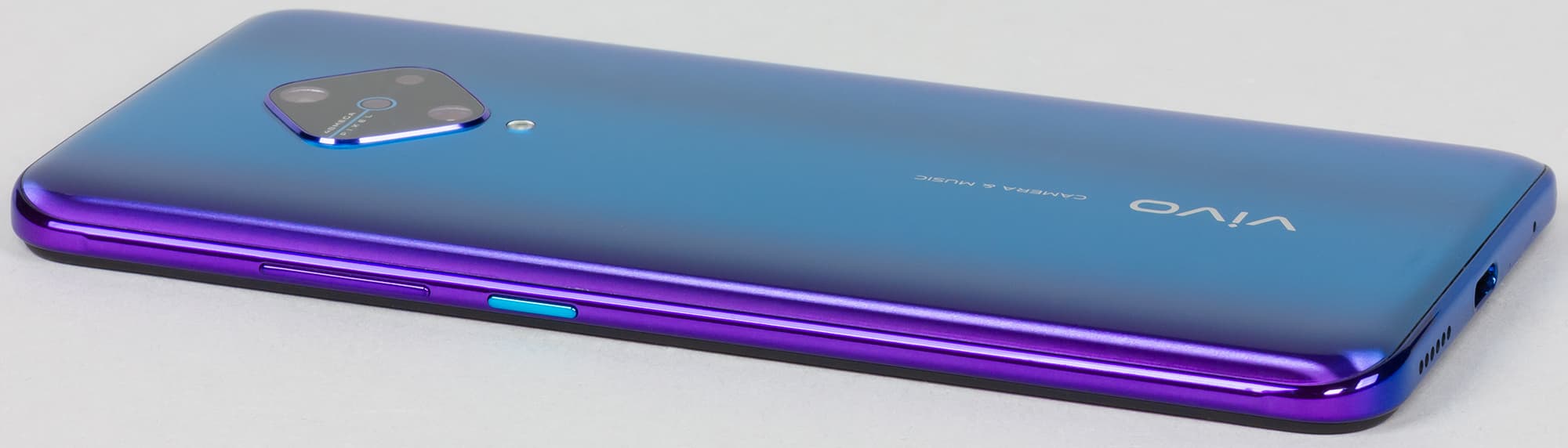Яркость под углом у обоих экранов заметно уменьшилась (чтобы избежать сильного затемнения, выдержка увеличена в сравнении с фотографиями, сделанными перпендикулярно к экрану), но в случае Vivo V17 падение яркости выражено гораздо меньше. В итоге при формально одинаковой яркости экран Vivo V17 визуально выглядит гораздо более ярким (в сравнении с ЖК-экранами), так как на экран мобильного устройства часто приходится смотреть как минимум под небольшим углом.