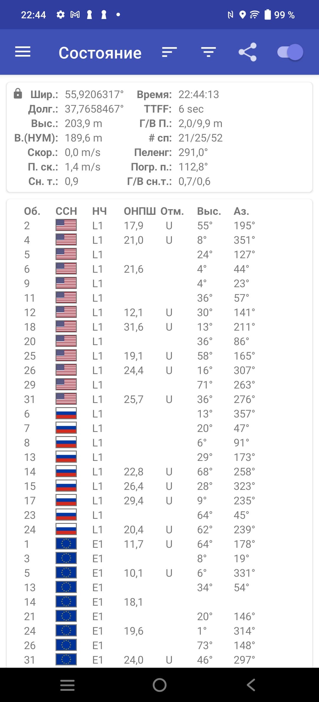 Навигационный модуль работает с GPS (с A-GPS), Глонасс, Beidou, Galileo и QZSS. Первые спутники при холодном старте обнаруживаются быстро, точность позиционирования не вызывает претензий. Все необходимые встроенные датчики, вплоть до гироскопа, на месте.
