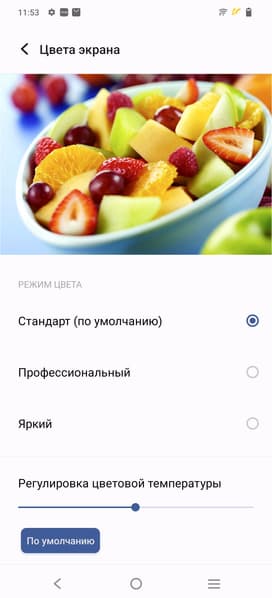 Фотография выше получена после выбора профиля Профессиональный в настройках экрана, всего их три.
