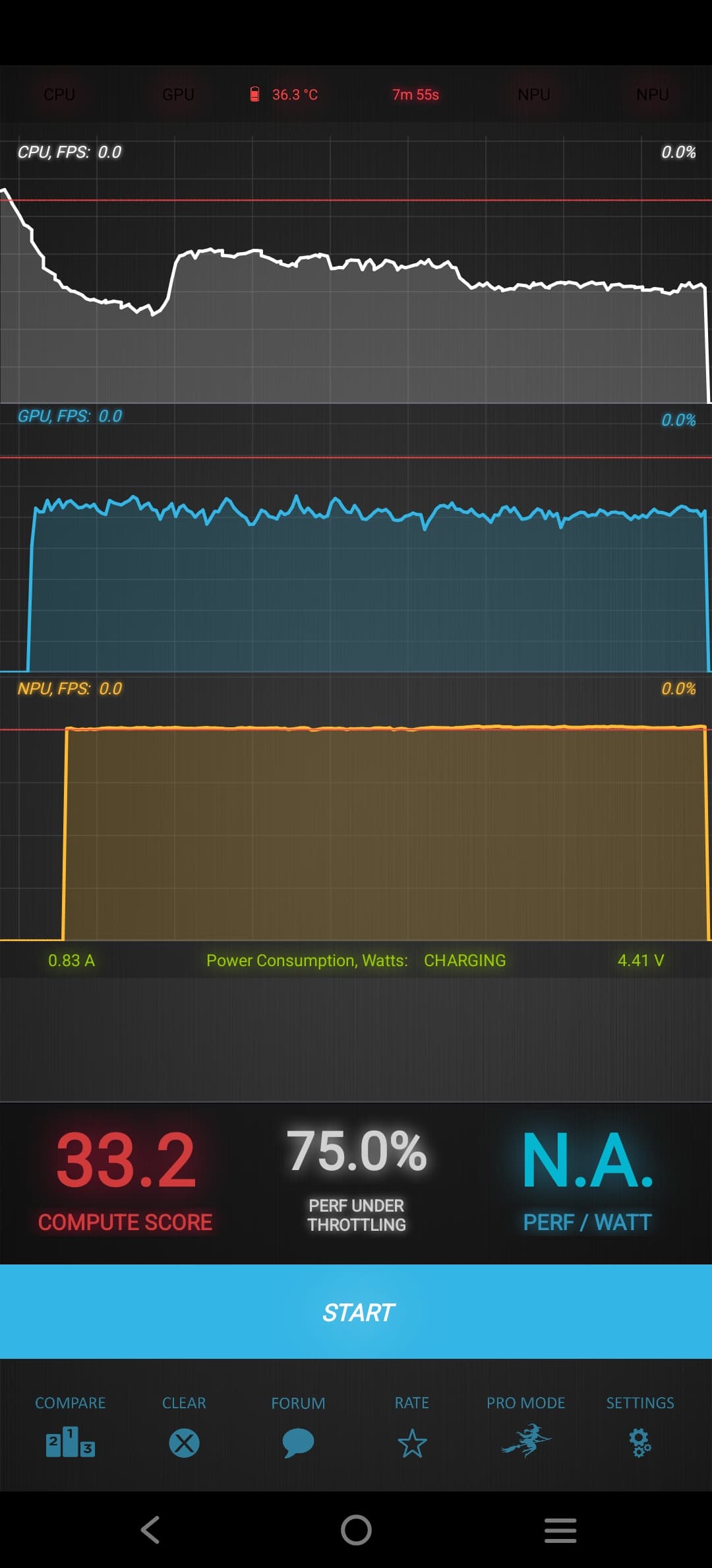 Тест на снижение производительности при нагреве мы проводим с помощью программы Burnout Benchmark, которая позволяет нагружать CPU, GPU и NPU: